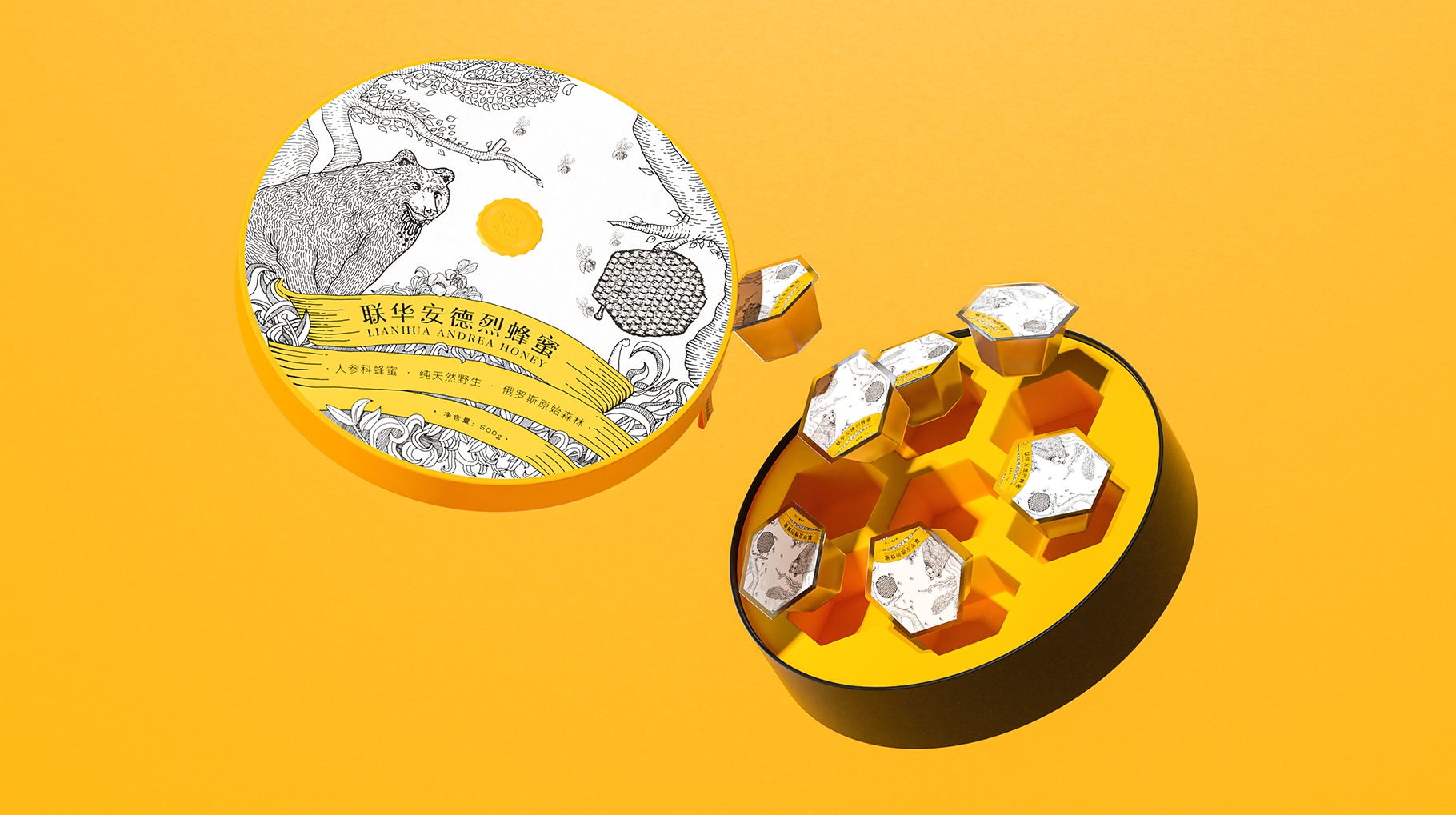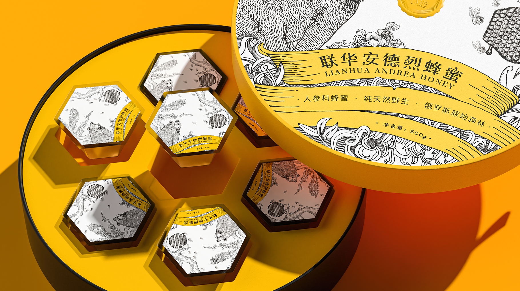 新穎的蜂蜜產(chǎn)品包裝設(shè)計(jì),包裝設(shè)計(jì)形式區(qū)別于常規(guī)的包裝裝訂方式,讓產(chǎn)品的體驗(yàn)更加人性化。
