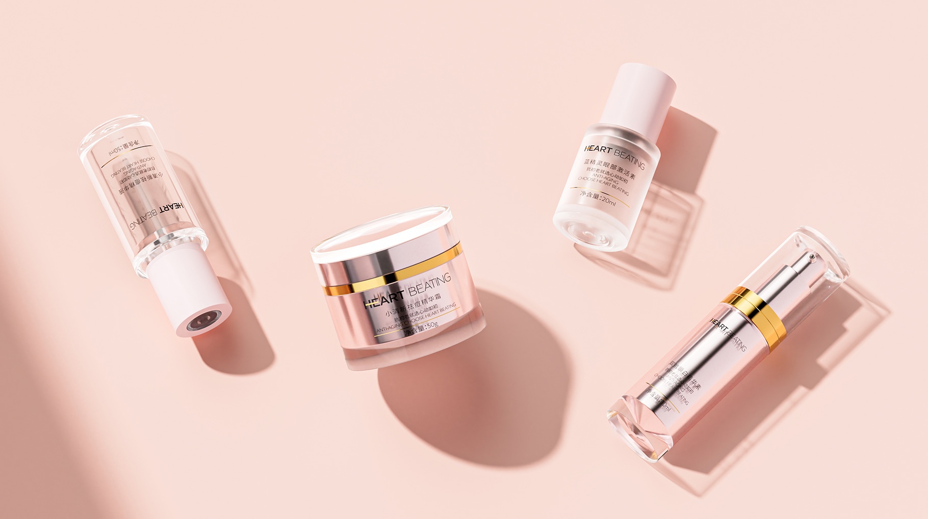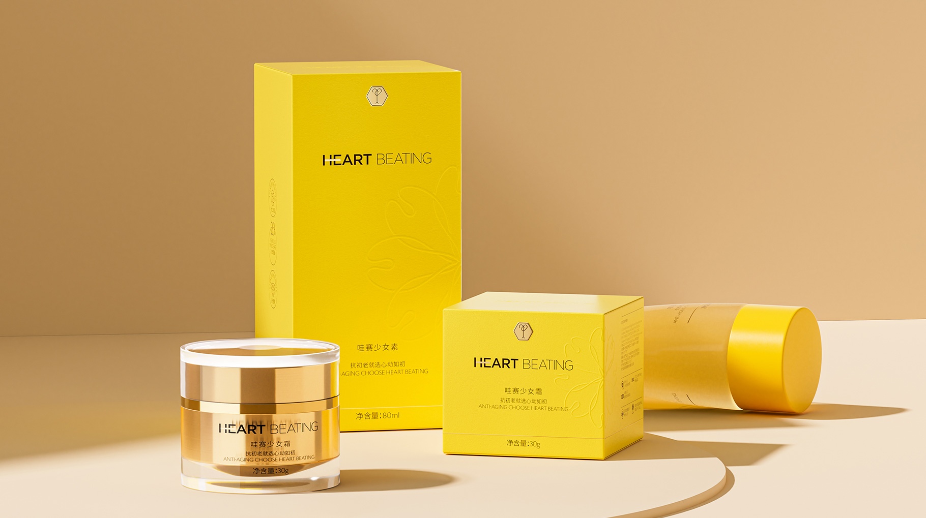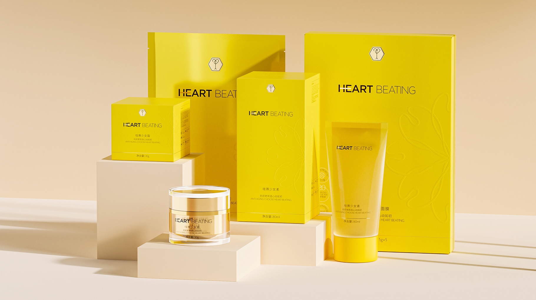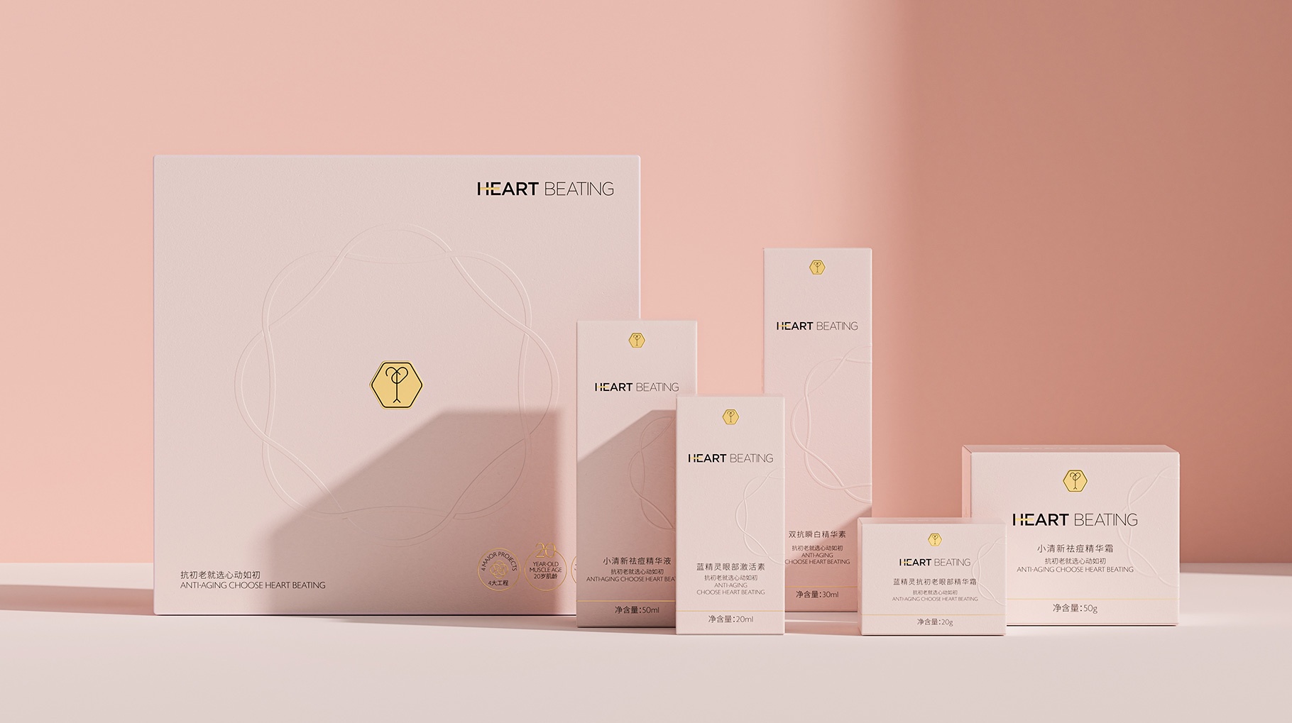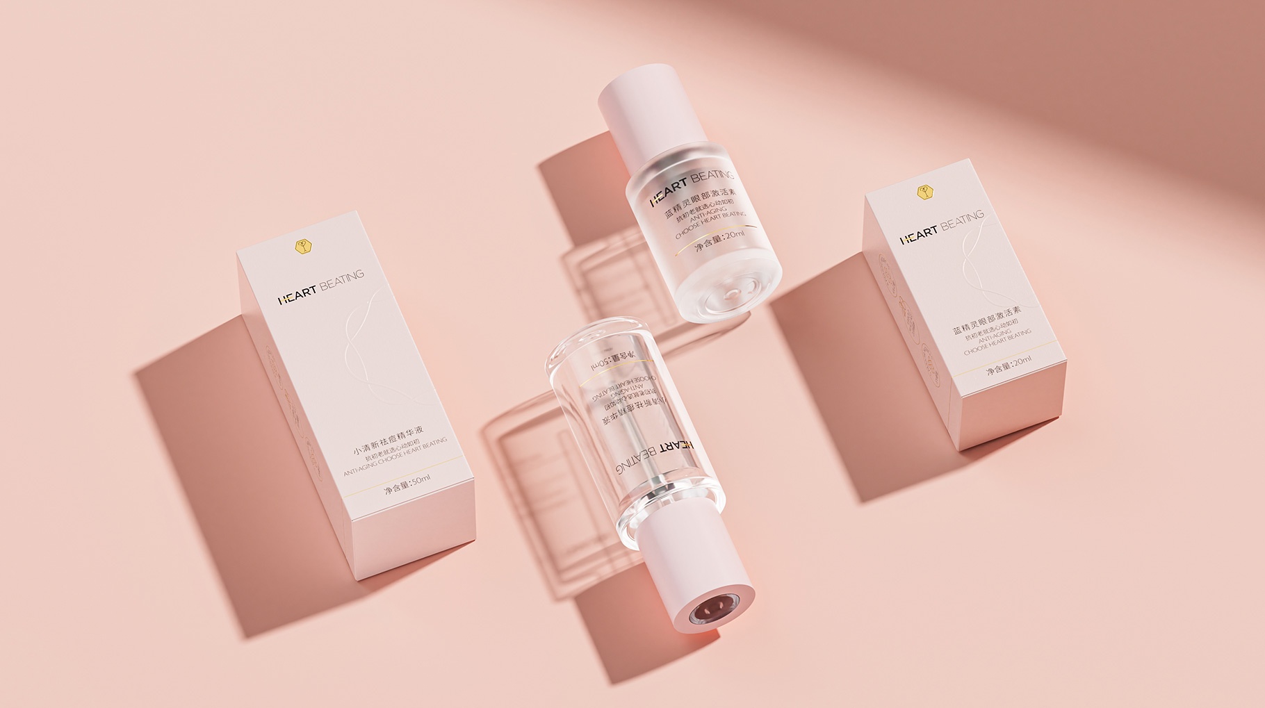 HEART BEATING、心動如初、護膚品LOGO、護膚品產品包裝設計、護膚品包裝設計公司、護膚品包裝設計、深圳包裝設計公司