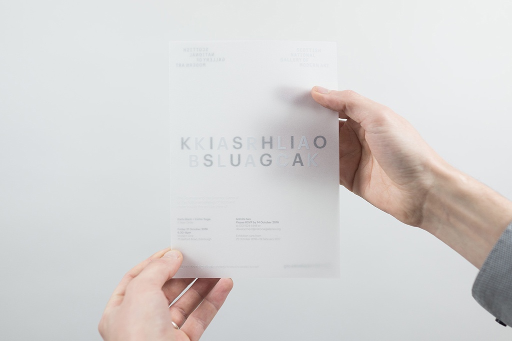 Karla Black和Kishio Suga在10月22日至2月19日期間在蘇格蘭國家現代藝術畫廊現代一號展出的作品。 藝術家們在展覽概念之前沒有意識到彼此的作品,他們在世界的另一邊工作,他們被描述為在使用日常材料的過程中團結一致,創造出對特定空間作出反應的雕塑作品。 這種共性為格拉斯哥O街設計的展覽的視覺形象提供了信息,并將字標,邀請,橫幅,標牌和海報聯系在一起。