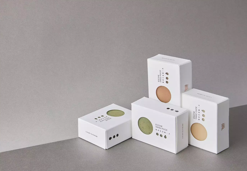 包裝設計公司設計了Egome包裝。手工皂是使用天然油和堿液手工制成的肥皂。基本上,這是油與堿液之間皂化反應的結果,可在固化和成熟程序后用于洗滌和清潔。他們的客戶臺灣從事手工皂的生產和銷售。它希望重新設計品牌形象的包裝,將設計定位為“純”。設計師提出了一個簡單的概念,即通過設計來樹立品牌形象并占領年輕市場。通過挖掘包裝盒可以呈現出不同顏色的肥皂,這構成了整個視覺效果的特殊之處。